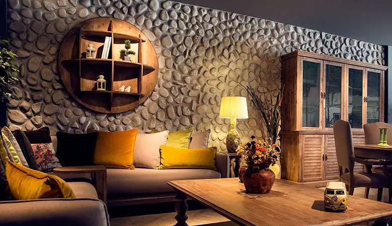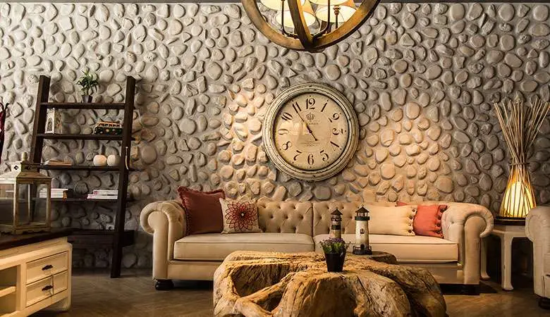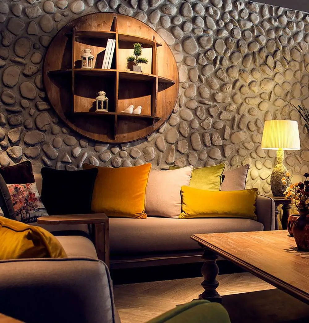 This series of river stones create warm and safe wall surfaces, suitable for use where there may be regular contact with the wall.